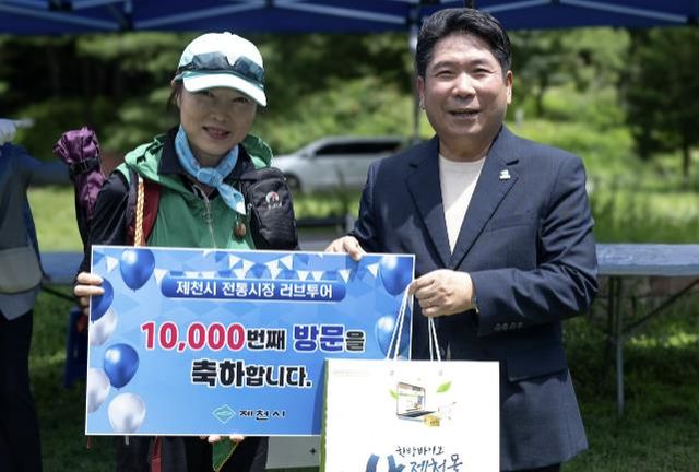 [파이낸셜경제=김영란 기자] 제천시는 지난 26일 한방생태숲공원 잔디광장에서 러브투어 1만번째 방문객 환영식을 개최했다.
