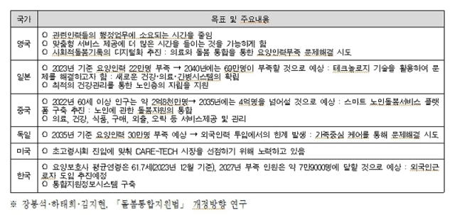 저출산・고령화와 그에 따른 돌봄의 문제가 이제 일본이나 우리나라와 같은 일부 국가 또는 수혜적・소비적 활동에 한정되지 않는 의제로서, 많은 나라가 나름의 노력을 기울이고 있다.