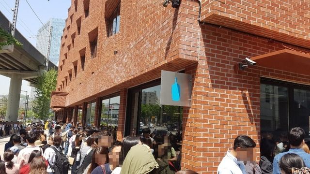 3일 서울 성동구 소재 블루보틀 성수점에 모인 인파. 사진=천진영 기자