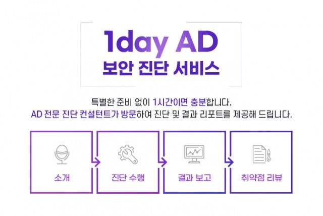 1Day AD 보안진단은 굿모닝아이텍과 협력사 네오아이앤이의 전문 컨설턴트가 기업 현장을 직접 방문해 120개 이상의 평가 항목을 기반으로 AD 환경을 점검하는 서비스다. 별도 준비 없이 약 1시간 내에 진단이 가능하며, 주요 보안 취약점에 대한 구체적인 결과와 함께 실질적인 개선 가이드를 제공하는 것이 특징이다.