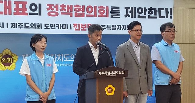 이어 "지금은 제주의 지방자치제도가 완성되냐, 기약 없이 떠내려가냐는 중대한 갈림길에 서 있다"며 "도지사와 각 정당 대표들이 한 자리에 모인 정책협의회를 가장 빠른 시일 내로 구성할 것을 제안한다"고 말했다.