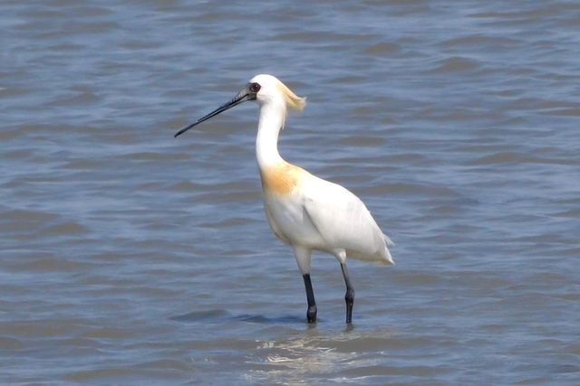 암수의 형태는 유사하다. 몸 전체가 흰색이고 검은색의 긴 부리는 끝이 주걱 모양이다. 번식기에는 머리에 장식깃이 생긴다. 어린 새는 부리가 검은빛이 도는 살색이고 날개 끝이 검은색이다.