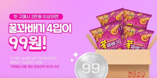 바로 ‘꿀꽈배기 4봉 세트’를 단돈 99원에 구매할 수 있는 행사로, 첫 구매 고객이 3만 원 이상 결제 시 제공되는 한정 특가 혜택이다. 해당 이벤트는 농심 공식몰 단독으로 운영되며, '선착순 수량 소진 시 종료'라는 조건도 붙었다.