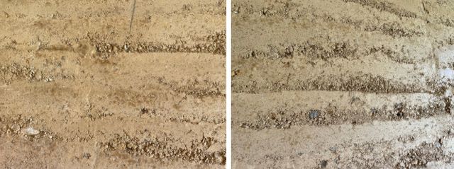 지층의 결은 '흙막이벽'이라는 독특한 방식으로 표현됐다. 흙과 돌, 물을 섞어 여러 차례 다지고 압축하는 과정을 반복해 벽을 세우는 방식으로, 실제 땅속의 단면처럼 자연스럽고 묵직한 질감을 구현해냈다.