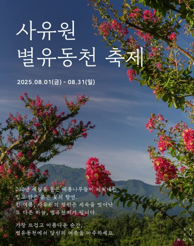 대구 군위에 위치한 사유원에서 다음 달 1일부터 만개한 배롱나무꽃을 만날 수 있다.