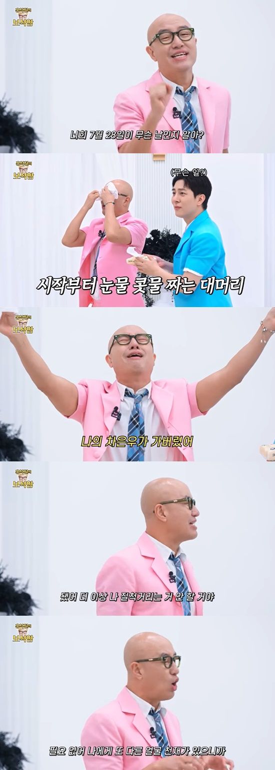 이에 홍석천은 "가버렸어 드디어. 나의 차은우가 가버렸어"라며 눈물을 보였고, 김똘똘은 "아 맞다. 은우님 입대날이구나"라며 "선배님 눈물 흘릴만 하세요. 선배님이 은우님한테 '보석함' 나와달라고 그렇게 애원했는데 결국 가버리셨군요"라고 반응했다.