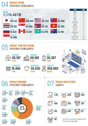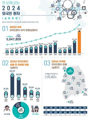 2024년 한국을 방문한 외국인환자가 실환자 기준 117만 명을 기록해 전년(61만 명) 대비 1.9배 증가하며 사상 최대치를 달성했다.