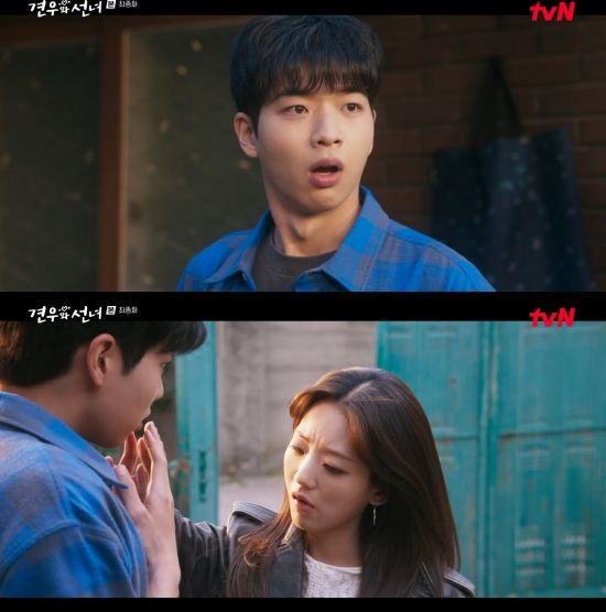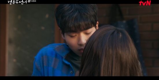 29일 방송된 tvN '견우와 선녀' 12회(최종회)에서는 봉수(조이현 분)가 표지호(차강윤)에게 입을 맞춘 모습이 그려졌다.