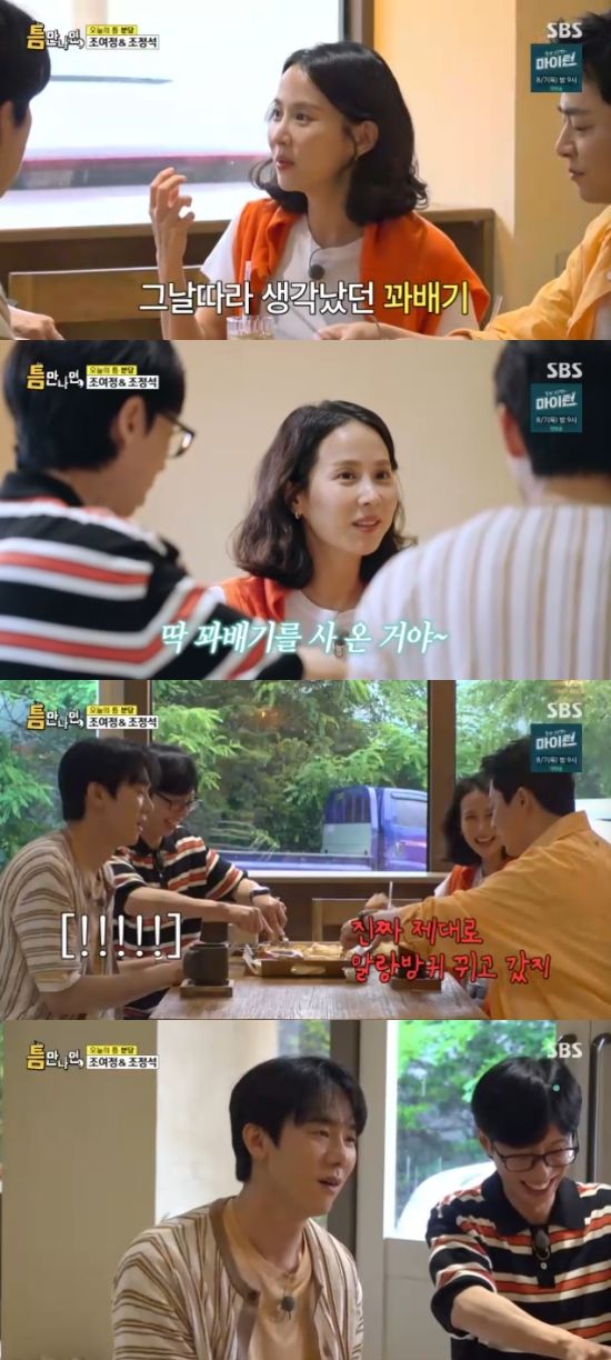 조여정은 "근데 그날 제가 꽈배기가 너무 먹고 싶었는데, 마침 연석이가 꽈배기를 사서 촬영장에 온거다. 너무 신기했다"면서 고마워하며 훈훈한 분위기를 만들었다. 하지만 조정석은 "제대로 알랑방귀를 뀌고 갔다"고 장난쳐 웃음을 자아냈다.