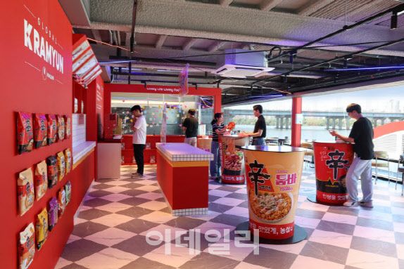 농심(004370) 역시 지난 14일 서울 한강버스 여의도 · 잠실 선착장에 K라면 체험매장 ‘너구리의 라면가게’를 조성했다. 농심은 가장 많은 이용객이 예상되는 여의도와 잠실 선착장에 너구리의 라면가게를 마련했다. 방문객은 한강버스 선착장 CU 편의점에서 라면을 구입해 2층 ‘너구리의 라면가게’(라면 체험 매장)의 즉석 조리기를 이용해 직접 끓여 먹을 수 있다.