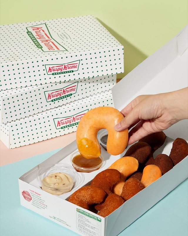 오리지널 글레이즈드 딥, 시가몬 슈가 딥, 코코아 슈가 딥 등 3종으로 구성된 픽앤딥은 소스를 찍어 먹는 도넛이다.