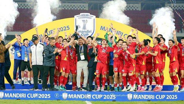 베트남 U-23 대표팀은 29일(한국시간) 인도네시아 자카르타의 겔로라 풍 카르노 스타디움에서 열린 2025 아세안축구연맹(ASEAN) U-23 챔피언십 결승에서 인도네시아를 1-0으로 꺾고 우승을 차지했다. / 베트남축구협회 공식 페이스북