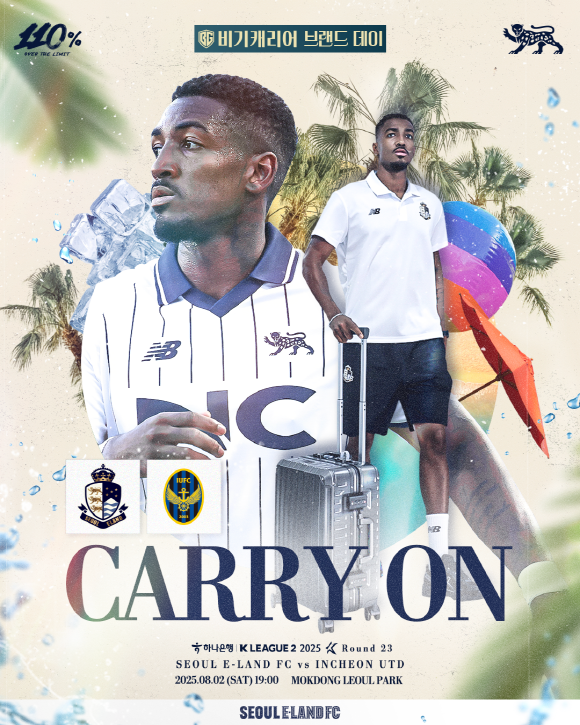 [풋볼리스트] 김정용 기자= 서울이랜드FC가 여름 휴가철을 맞아 여행가방 전문 브랜드 비기캐리어와 함께 특별한 브랜드데이를 개최한다. 그라운드에서 원하는 캐리어를 들고 달리는 ‘트래블 레이스’ 등 다채로운 이벤트가 열린다.