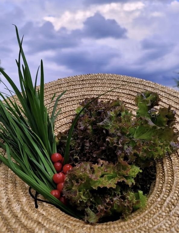또 모자와 장갑, 마스크 등으로 온몸을 단단히 무장한 채 농작업 복장을 하고 앉아, 직접 수확한 방울토마토와 고추를 자랑하는 모습으로 눈길을 끌었다.