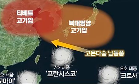 8호 태풍은 정면으로 돌파했으나 열돔에 공중분해됨.