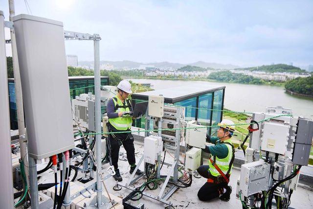 SKT와 SK오앤에스 엔지니어가 경기도 화성시에서 통신장비를 점검하는 모습. ⓒ SK텔레콤
