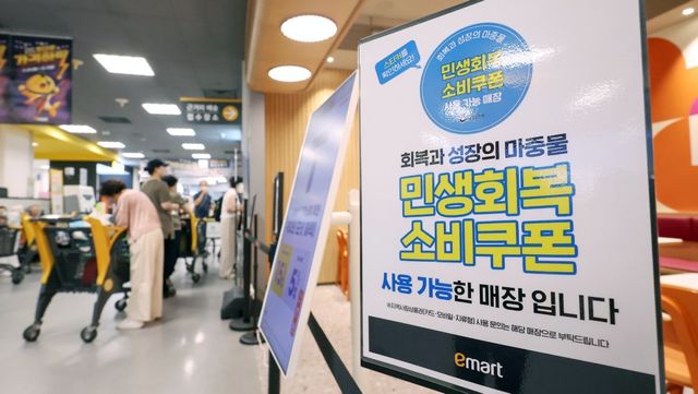 서울의 한 대형마트 입점 매장에 소비쿠폰 사용 홍보 안내문이 게시돼 있다. / 뉴스1