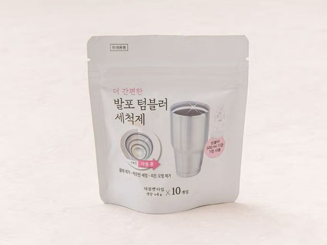 쓰는 방법도 간편하다. 먼저 세정을 원하는 용기에 뜨거운 물을 80% 채우고 텀블러 500ml 기준 발포제 1알을 넣어준다. 뚜껑을 닫지 않고 10분 정도 기다린다. 세정제 반응이 끝나면 뚜껑을 닫고 약 10초간 흔들어준다. 이후 세정제 녹인 물을 버리고 흐르는 물에 깨끗하게 헹궈주면 끝이다.