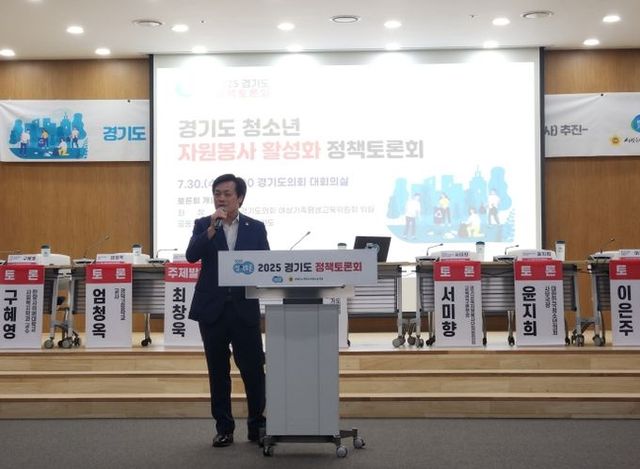 [와이뉴스] 경기도의회 여성가족평생교육위원회 문형근 위원장(더불어민주당, 안양3)은 2025년 7월 30일 '경기도 청소년 자원봉사 활성화 정책토론회'에 참석해 축사를 전하고, 청소년 자원봉사 정책의 제도화 및 지속가능한 추진 기반 마련에 대한 적극적 의지를 밝혔다..