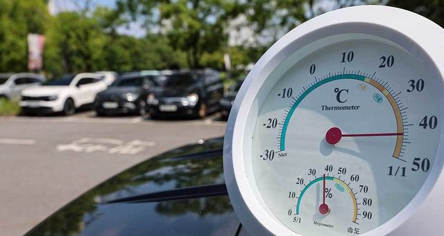 무더위가 이어진 서울 시내 한 야외주차장에 놓인 온도계가 지열과 차량에 반사된 열까지 더해져 40도를 넘기고 있다. / 뉴스1