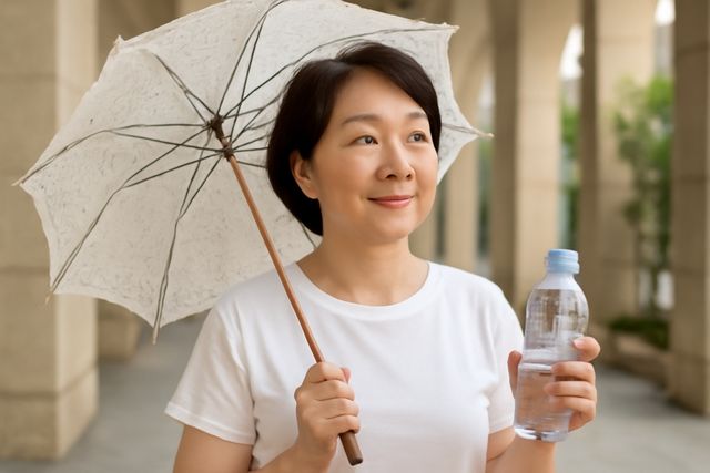 더불어 외출 시에는 창이 넓은 모자와 더불어 바람이 잘 통하는 가벼운 옷차림이 권장된다. 햇빛을 반사할 수 있는 밝은색 계열의 옷을 입는 것이 좋으며 양산과 물병을 휴대하여 수시로 사용하는 것이 도움된다.