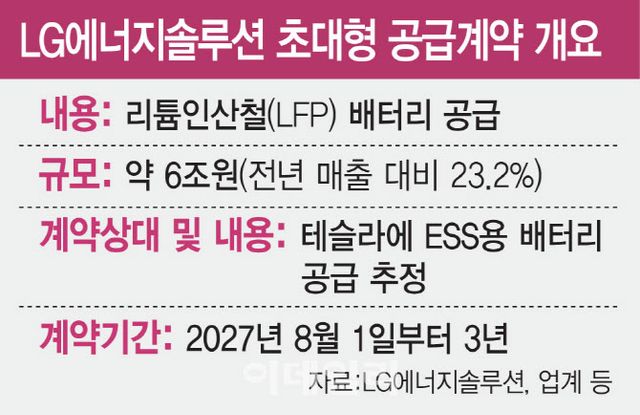 회사 측은 “경영상 비밀유지 필요에 따라 계약 상대 등을 밝힐 수 없다”고 했다. 다만 업계에서는 계약 당사자가 테슬라일 것으로 추정하고 있다. LG에너지솔루션은 현재 전기차용이 아닌 에너지저장장치(ESS)용 LFP 배터리만 미국에서 양산하고 있다는 점, 테슬라가 올해 1분기 실적 발표 때 “중국이 아닌 미국 내 기업으로 LFP 배터리 공급처를 찾고 있다”고 밝힌 점 등이 그 근거다.