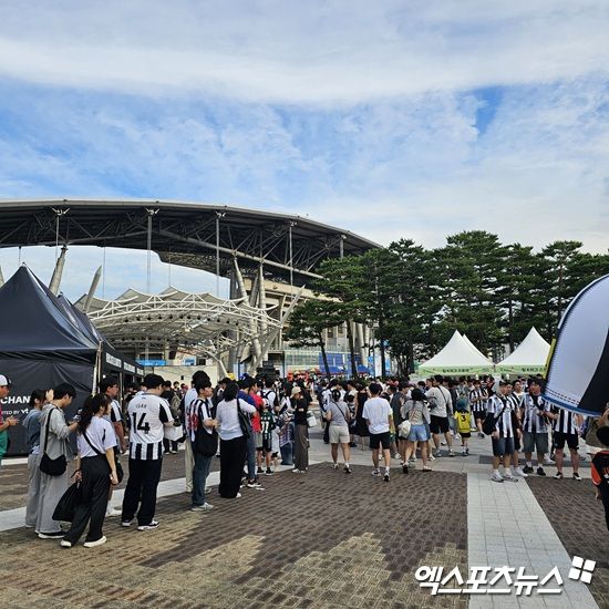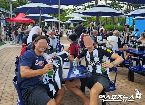 (엑스포츠뉴스 수원, 나승우 기자) 36도 무더위에도 수원월드컵경기장은 뉴캐슬 유나이티드 팬들로 문전성시를 이뤘다. 영국에서 온 뉴캐슬 팬들은 새롭게 합류한 박승수의 성공을 기원했다.