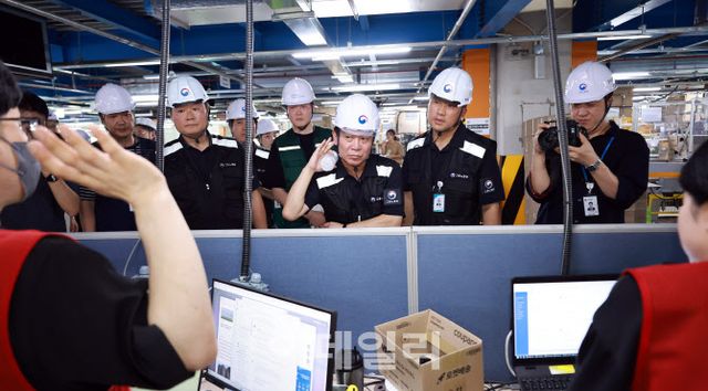 김 장관은 “물류센터는 다층식 선반 구조의 특성상 내부 공기 흐름이 정체돼 작업장 온도가 쉽게 올라 노동자들이 온열질환에 노출될 위험이 높다. 제일 꼭대기 층부터 가보니 매우 더웠다”고 했다.