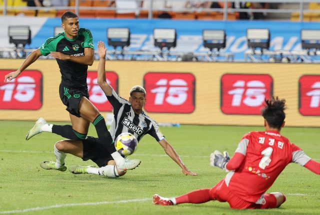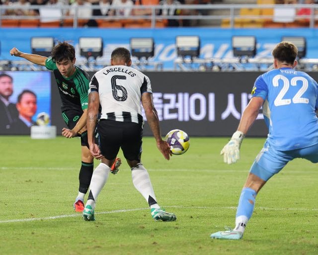 킥오프 휘슬과 함께 뉴캐슬이 강한 전방 압박으로 팀 K리그를 몰아붙였다. 전반 2분에는 연계 패스 후 오른쪽 측면에서 마일리의 크로스가 올라왔고, 고든의 오른발 슈팅이 나왔으나 빗나갔다.