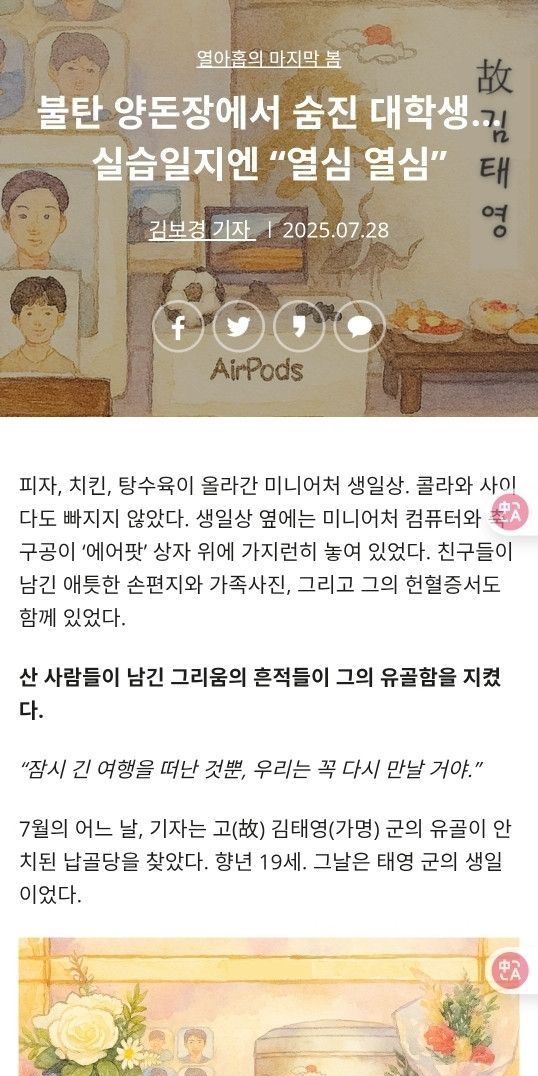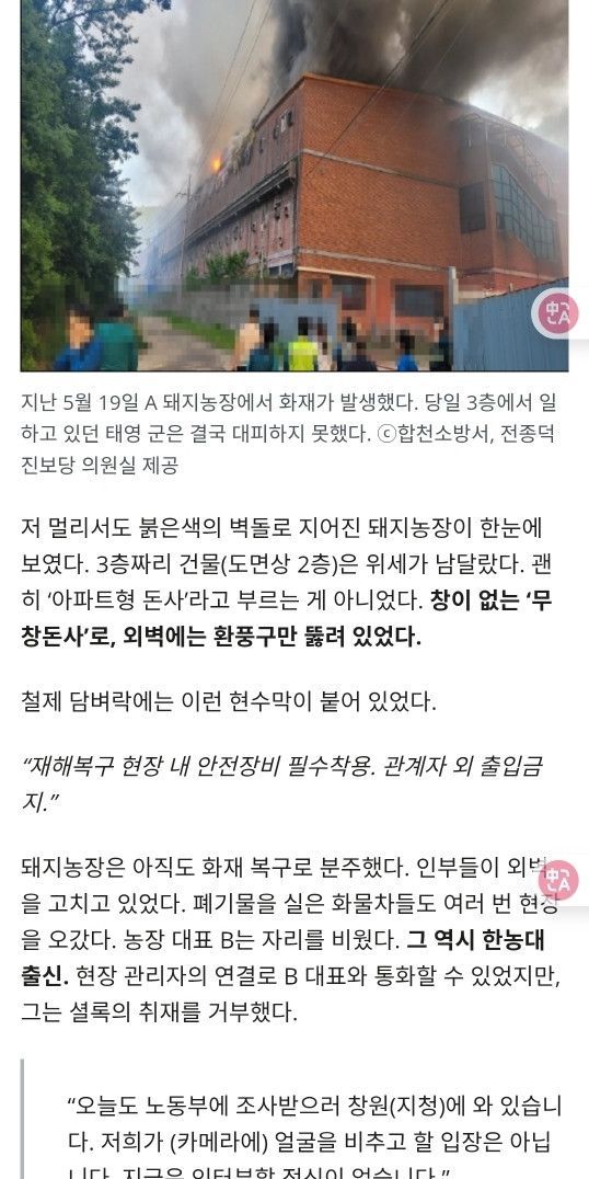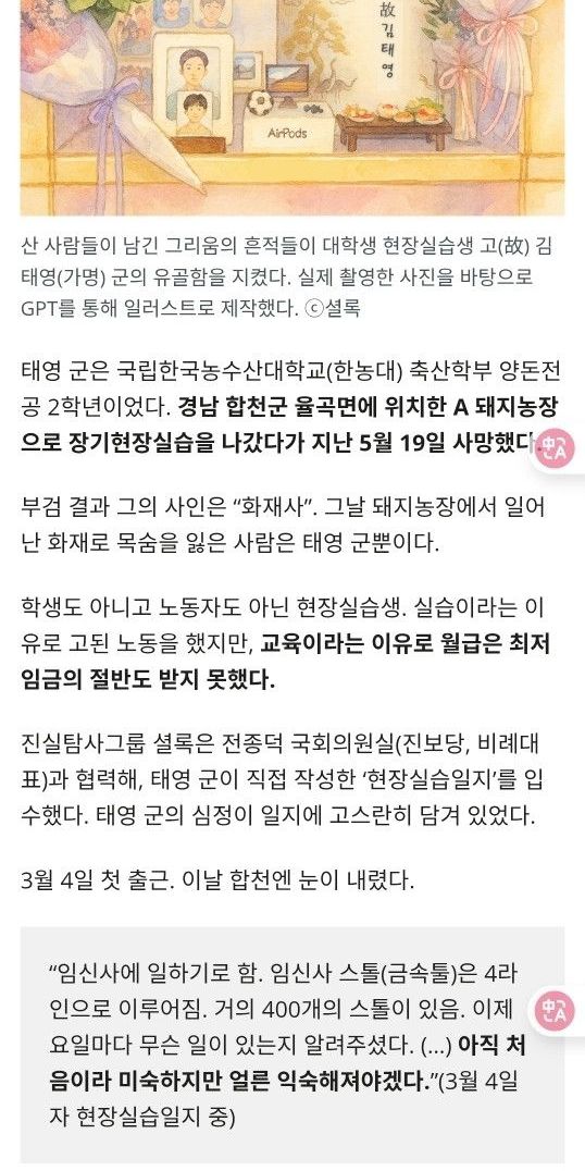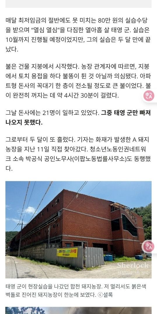 불탄 양돈장에서 숨진 대학생… 실습일지엔 “열심 열심”