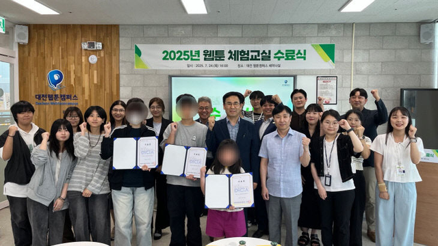 대전정보문화산업진흥원(원장 이은학)은 학교 밖 청소년(꿈드림)의 진로 탐색 및 창작체험을 위해 마련된‘웹툰 체험교실’의 수료식 행사를 7월 24일(목) 대전 웹툰캠퍼스에서 진행했다.