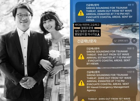 (엑스포츠뉴스 황수연 기자) 하와이에 거주 중인 정형돈의 아내 한유라가 쓰나미 경보 문자에 기도하는 마음을 전했다.