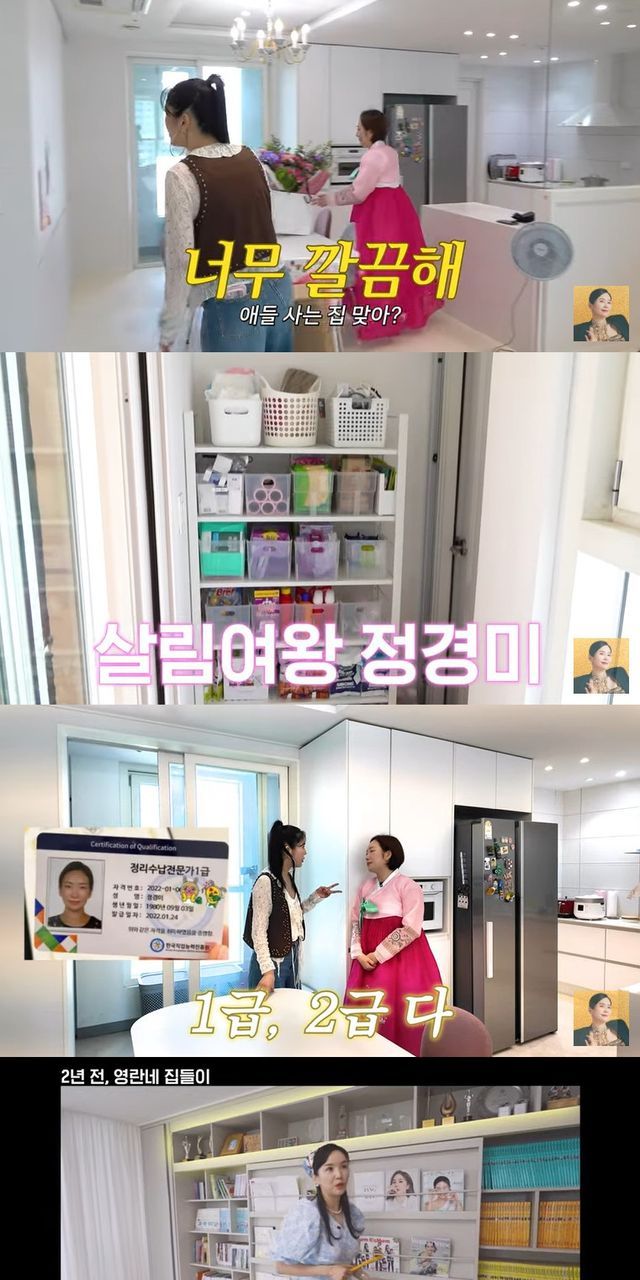 그곳에는 완벽하게 정리가 잘 된 다용도실이 위치해 있었고, 장영란이 "살림의 여왕이다. 정리 자격증 1급 자격증 있다"고 하자 정경미는 "1급, 2급 다"라며 정리수납전문가 자격증을 보유 중임을 밝혔다.