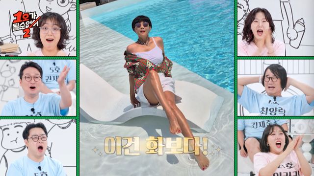 리더 팽현숙은 입고 있던 셔츠를 벗고 맨살을 드러냈다. 모두가 "섹시하다"는 말에 남편 최양락은 "저걸 왜 내려"라며 당황했다. 모두가 "모니카 벨루치 같다", "화보다", "누가 환갑으로 보냐"며 감탄하자, 최양락은 "아니 사진 찍을 거면 사진관에서 찍지 수영장에 가서 찍냐"고 버럭 해 웃음을 자아냈다.