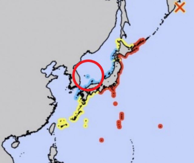 지난해 11월 일본 이시카와현 노토반도 서쪽 바다에서 발생한 지진으로 쓰나미 예보 지역을 표시할 때도 일본 기상청은 독도를 일본 영토처럼 표시한 바 있다.