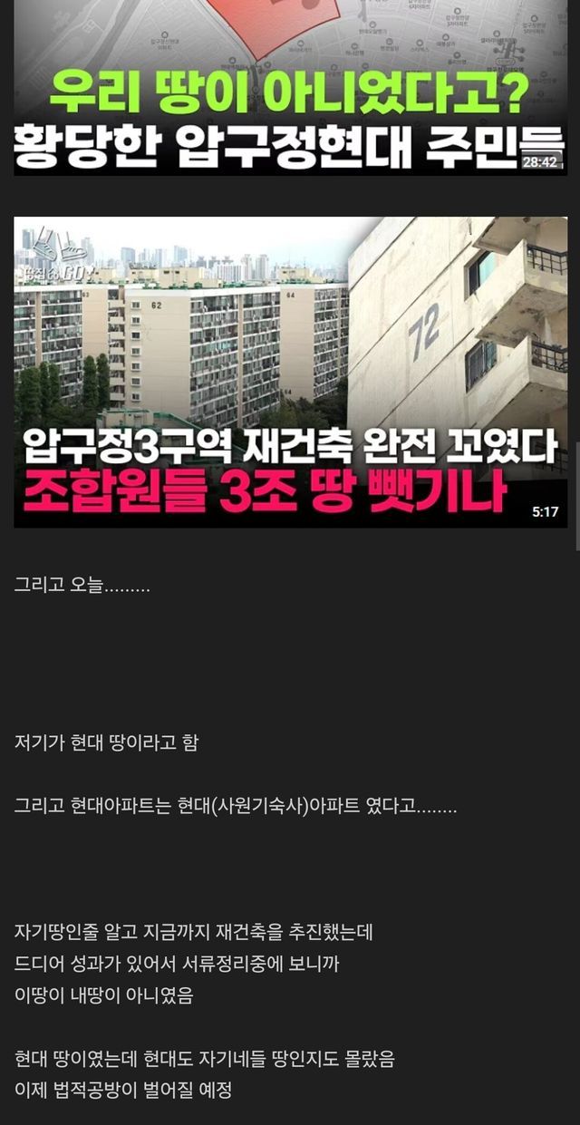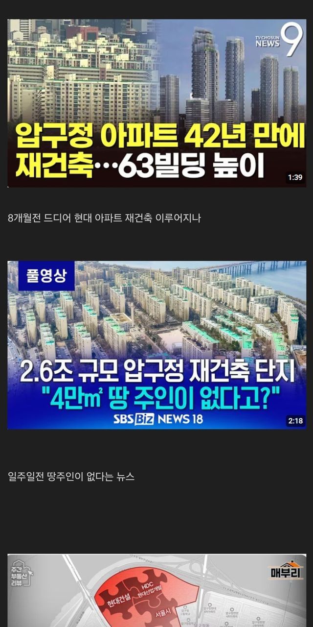 1. 대지지분 가지고있는 현대건설 등의 기업들이 과거 압구정 재개발했던 기업들임