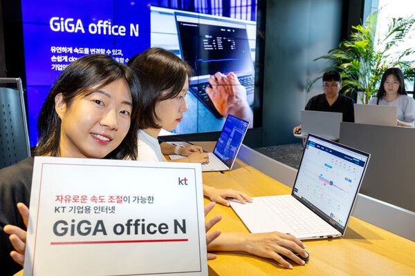 KT는 기업 고객 편의를 위해 9월부터 KT 기가 오피스 N 전용 포털을 통해 회선 대역폭을 변경하거나 네트워크 사용 현황 모니터링 등이 가능해진다.