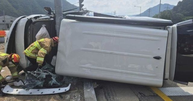 31일 소방 등에 따르면 전날 오후 2시32분쯤 인제 북면 한계사거리에서 A(42) 씨가 몰던 스타리아 승합차가 신호등을 들이받고 전도됐다.