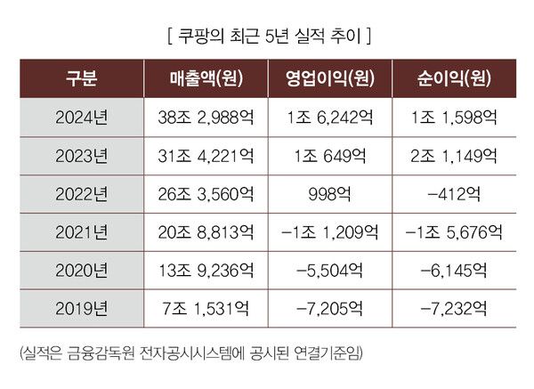 이에 따라 쿠팡은 매출이 급증하기 시작했고, 2022년부터는 영업이익이 창업 이후 처음으로 흑자로 돌아섰다. 코로나19 직전인 2019년에 7조 1,531억원이던 매출은 2020년 13조 9,236억원으로 2배 가까이 증가했고, 그 후로도 큰 폭의 성장세를 이어가며 지난해에는 28조 2,988억원을 기록했다.