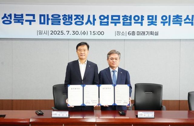 [파이낸셜경제=김영란 기자] 서울 성북구가 7월 30일 대한행정사회와 성북구 마을행정사 시범사업 업무협약을 체결하고, 8명의 행정사를 마을행정사로 위촉하며 주민 밀착형 행정상담 제도의 본격적인 운영을 알렸다.
