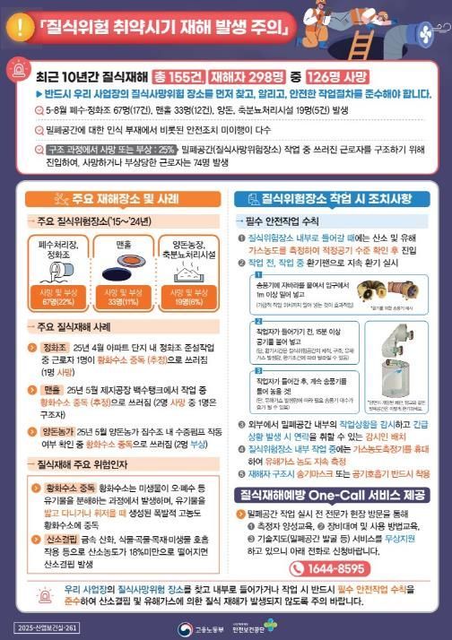 이번 교육은 여름철 기온 상승으로 맨홀이나 공기변실 등 밀폐 공간에서 질식사고 위험이 커짐에 따라 이루어졌다. 특히 황화수소, 일산화탄소, 탄소 결핍 등으로 인한 밀폐 공간 질식사고는 사망률이 높은 중대재해로, 최근 10년간 밀폐 공간 질식 재해로 126명이 사망한 바 있다.