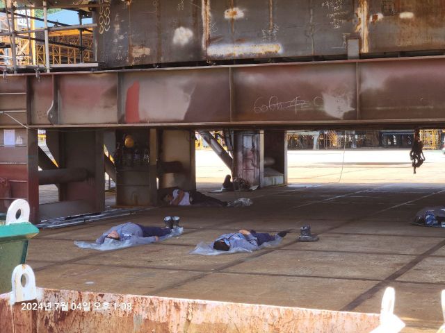 이런 와중에 고용노동부는 '산업안전보건기준에 관한 규칙'을 개정하면서 살인적인 폭염 대책을 내놓고 시행하고 있다. 그러나 이 대책이 과연 조선소의 현실에 부합하는가? 조선소가 이를 제대로 이행하고 있는지는 의문이다.