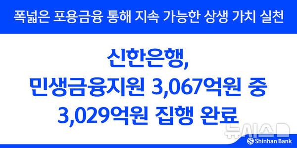 신한은행은 지난해부터 올 상반기까지 총 3067억원 규모의 민생금융지원 중 약 99%를 집행했다고 31일 밝혔다.
