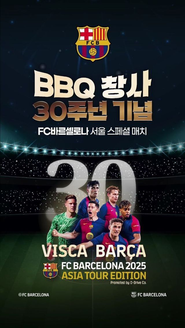 국내 최대 치킨 프랜차이즈 제너시스BBQ가 15년 만에 방한한 FC바르셀로나를 상암벌로 불러들이며, 전례 없는 ‘치킨 축제’를 완성했다. 31일 서울월드컵경기장에서 열린 ‘2025 FC바르셀로나 아시아투어FC서울 친선경기’ 현장은 BBQ의 창사 30주년을 기념하는 ‘BBQ DAY’로 치러지며, 약 3만여 명의 관람객이 BBQ의 열정과 함께 경기장을 가득 채웠다.