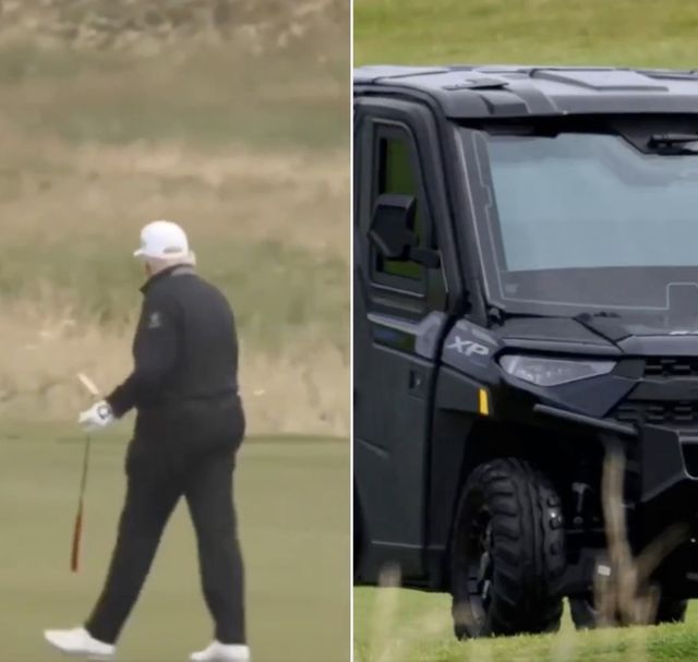 도널드 트럼프 미국 대통령의 골프 라운딩을 보호하기 위한 전용 방탄 차량이 공개됐다. 현지 언론은 해당 차량을 비공식적으로 ‘골프 포스 원(Golf Force One)’이라 부르며, 최근 스코틀랜드 턴베리 골프 리조트에서 포착됐다고 보도했다. 당시 트럼프 대통령은 영국 총리 키어 스타머와의 회동을 겸해 라운딩을 진행 중이었다.