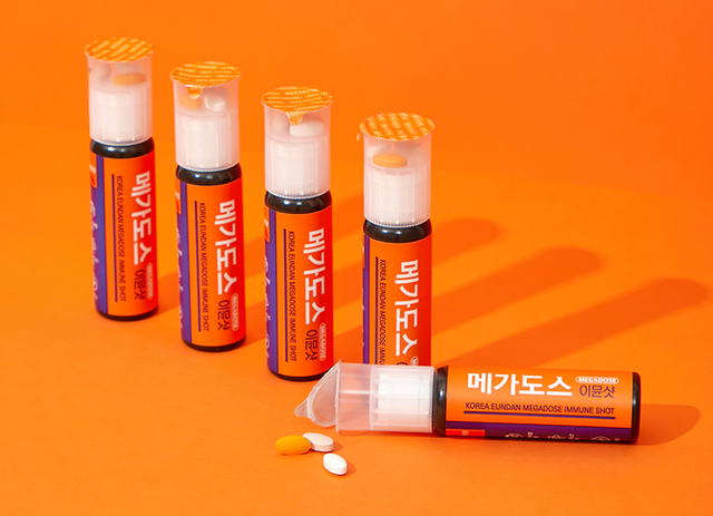 '메가도스 이뮨샷'은 정제와 액상을 하나로 구성한 복합형 건강기능식품으로, 간편한 섭취를 원하는 현대인을 위한 맞춤 설계가 특징이다. 글로벌 원료 기업 DSM사의 프리미엄 원료를 활용한 22종의 비타민·미네랄 3정의 정제와 필수 아미노산 9종에 아르기닌을 더해 총 2000㎎의 아미노산을 균형 있게 함유한 액상으로 구성했다.