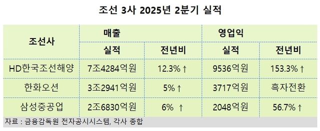 주력 조선사인 HD현대중공업은 2분기 매출 4조1471억원, 영업이익 4715억원을 기록하며 성장을 주도했다.