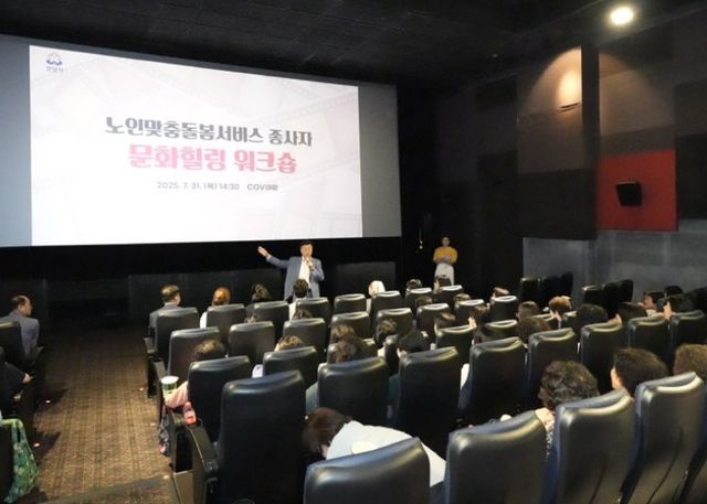 [파이낸셜경제=김영란 기자] 신상진 성남시장이 31일 오후 야탑CGV에서 열린 ‘노인맞춤돌봄서비스 종사자 문화힐링 워크숍’에 참석해 현장 종사자들을 격려했다.
