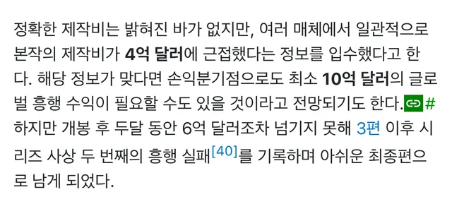 물론 제작비가 4억달러에 손익분기점이 10억달러라