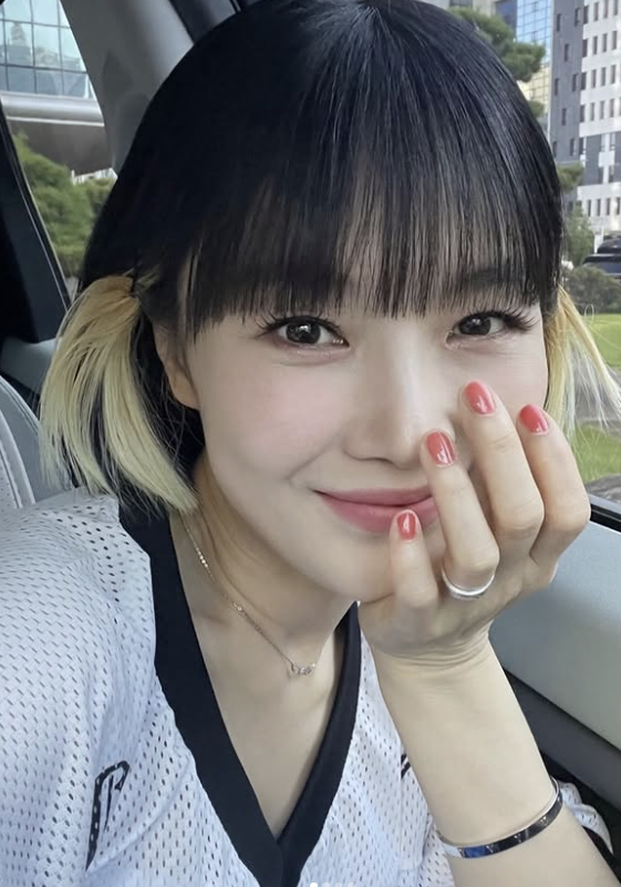 사진 속 자두는 차 안에서 턱을 괴고 앉아 카메라를 응시했다. 금발로 포인트를 준 투톤 단발 헤어스타일과 상큼한 미소가 나이를 가늠할 수 없는 동안 매력을 고스란히 전했다.